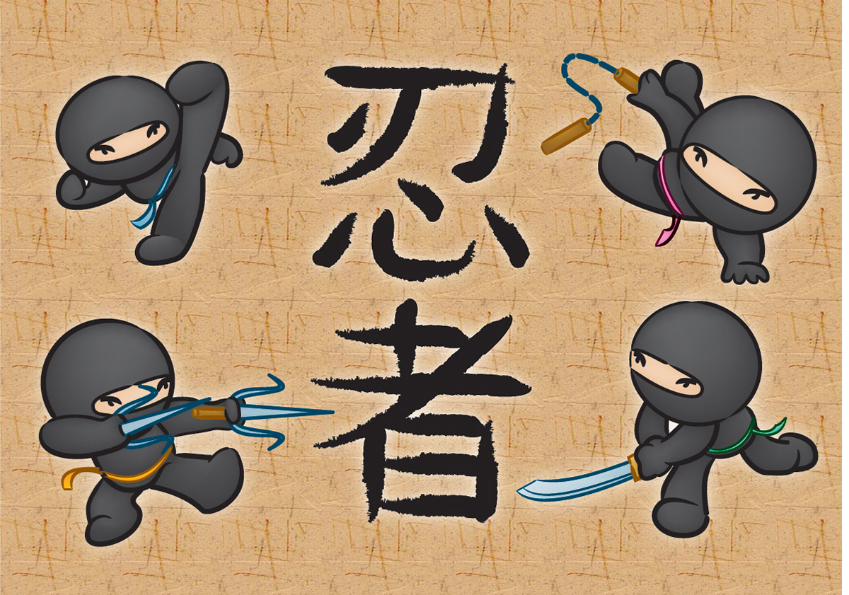Character study of Baby Ninjas, developed for a notebook cover, later redesigned as wall art for children; created with Adobe Illustrator