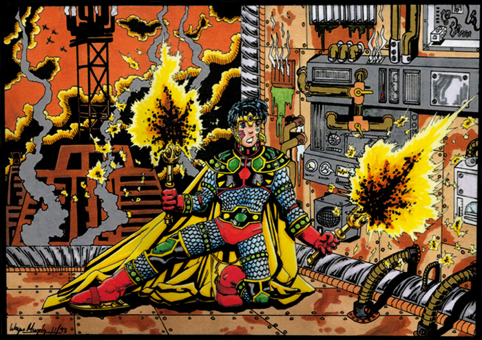 Character design for Kid Miracle, a child of New Gods characters Big Barda and Mister Miracle; created with pencil, ink and Copic and Pantone markers