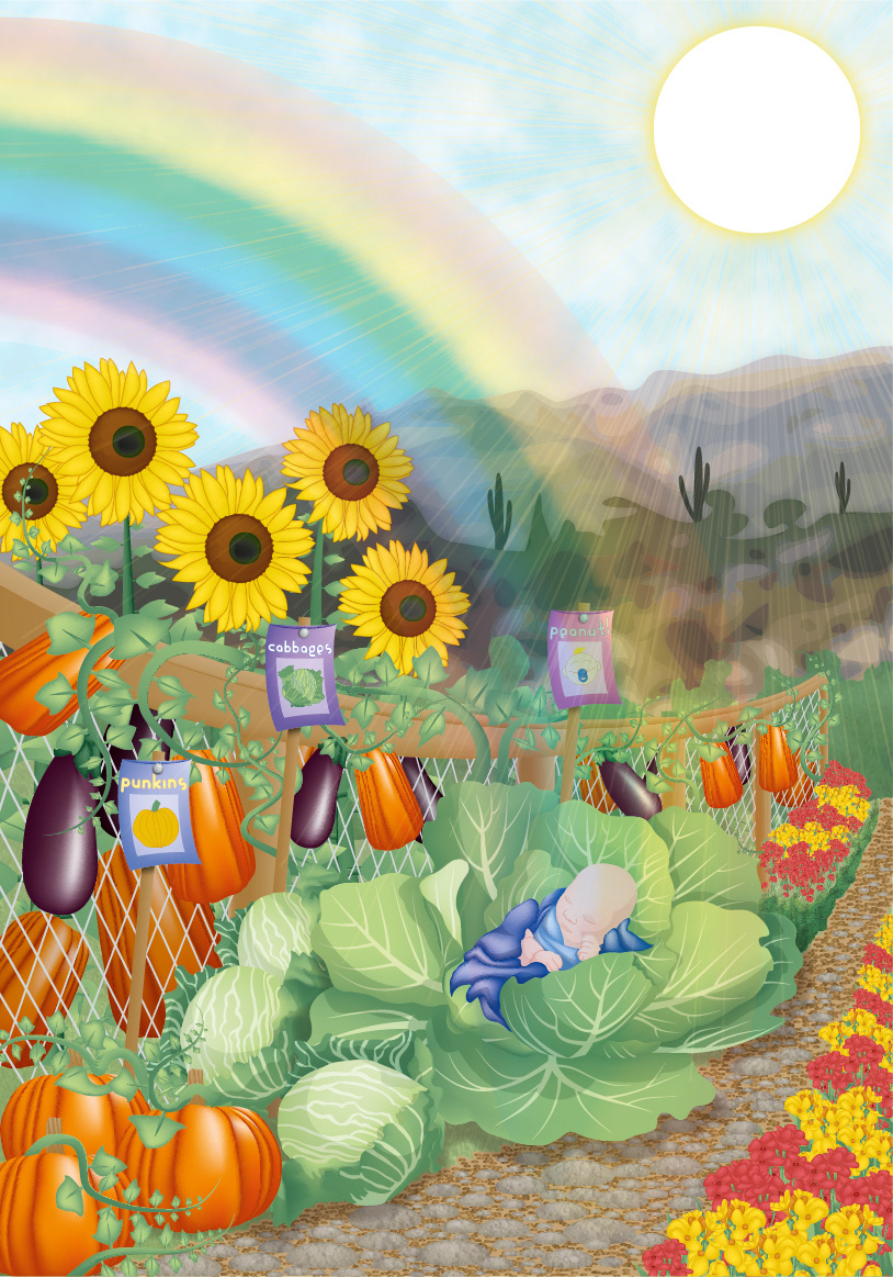 Pumpkin Patch Kid design used on a birthday card for newborn children; created with Adobe Illustrator