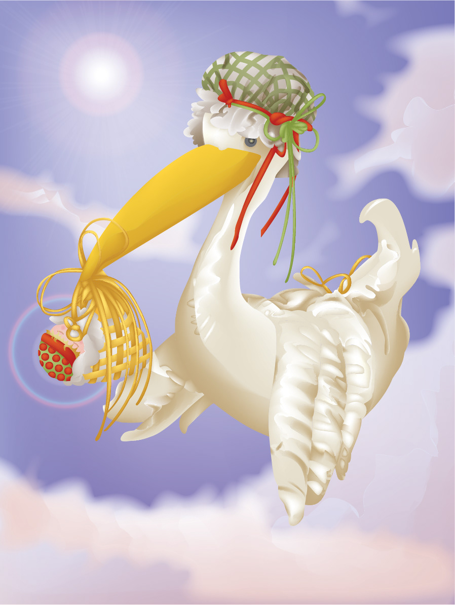 Stork with baby design used on a birthday card for newborn children; created with Adobe Illustrator