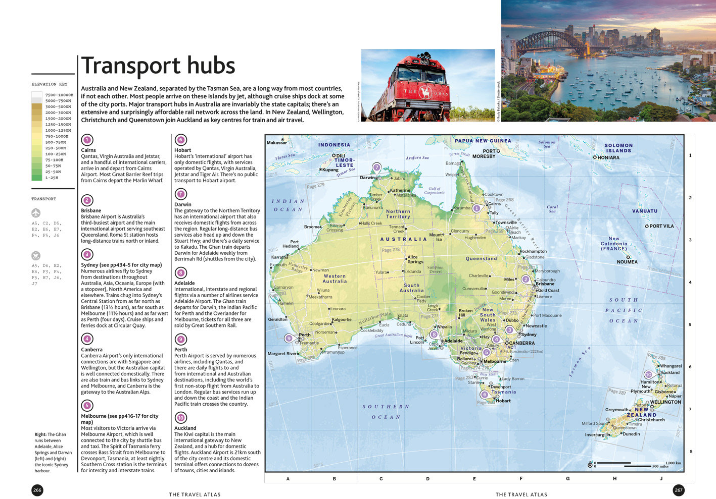 Australia & New Zealand transport hubs map from The Travel Atlas 1 from Lonely Planet