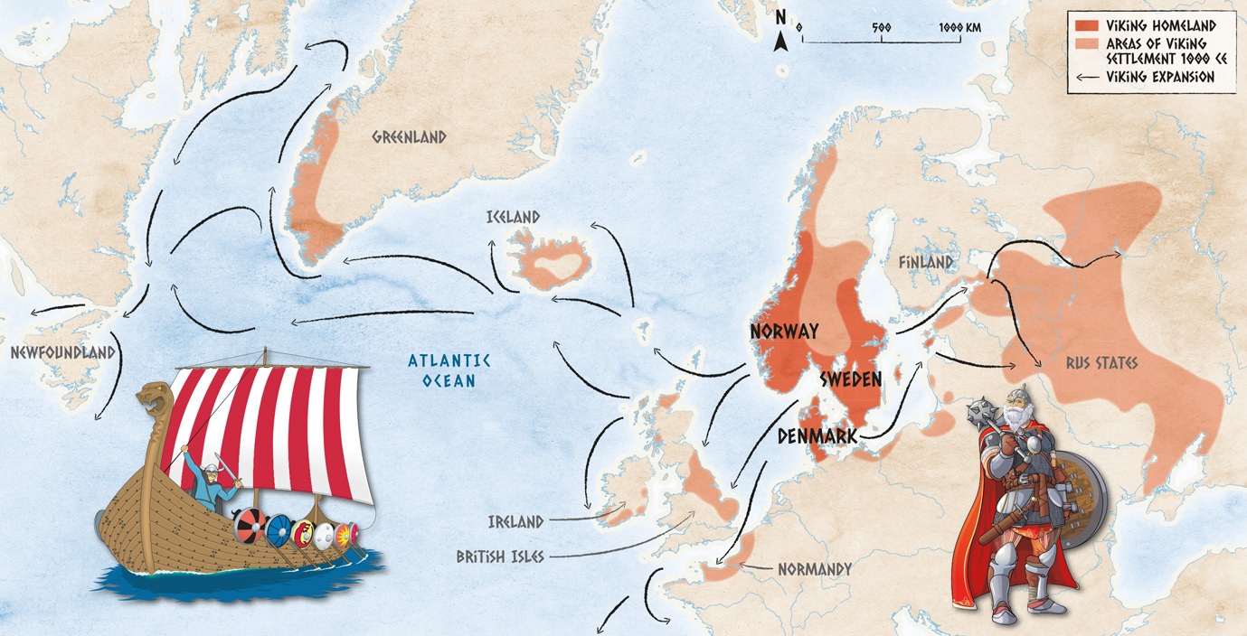 Map showing Viking settlements in Europe and North America to 1000 CE for Matilda Education's Good Humanities 8