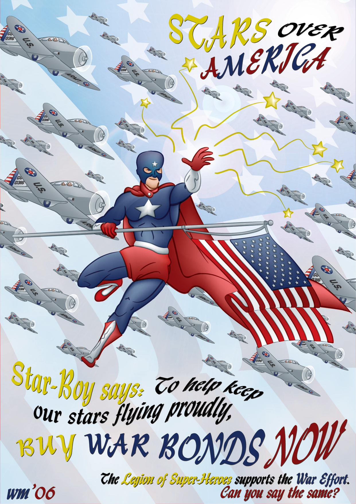 Reimagining Star Boy from the DC Comics title Legion of Super-Heroes into a WW1 propaganda & recruitment poster; created with Adobe Illustrator