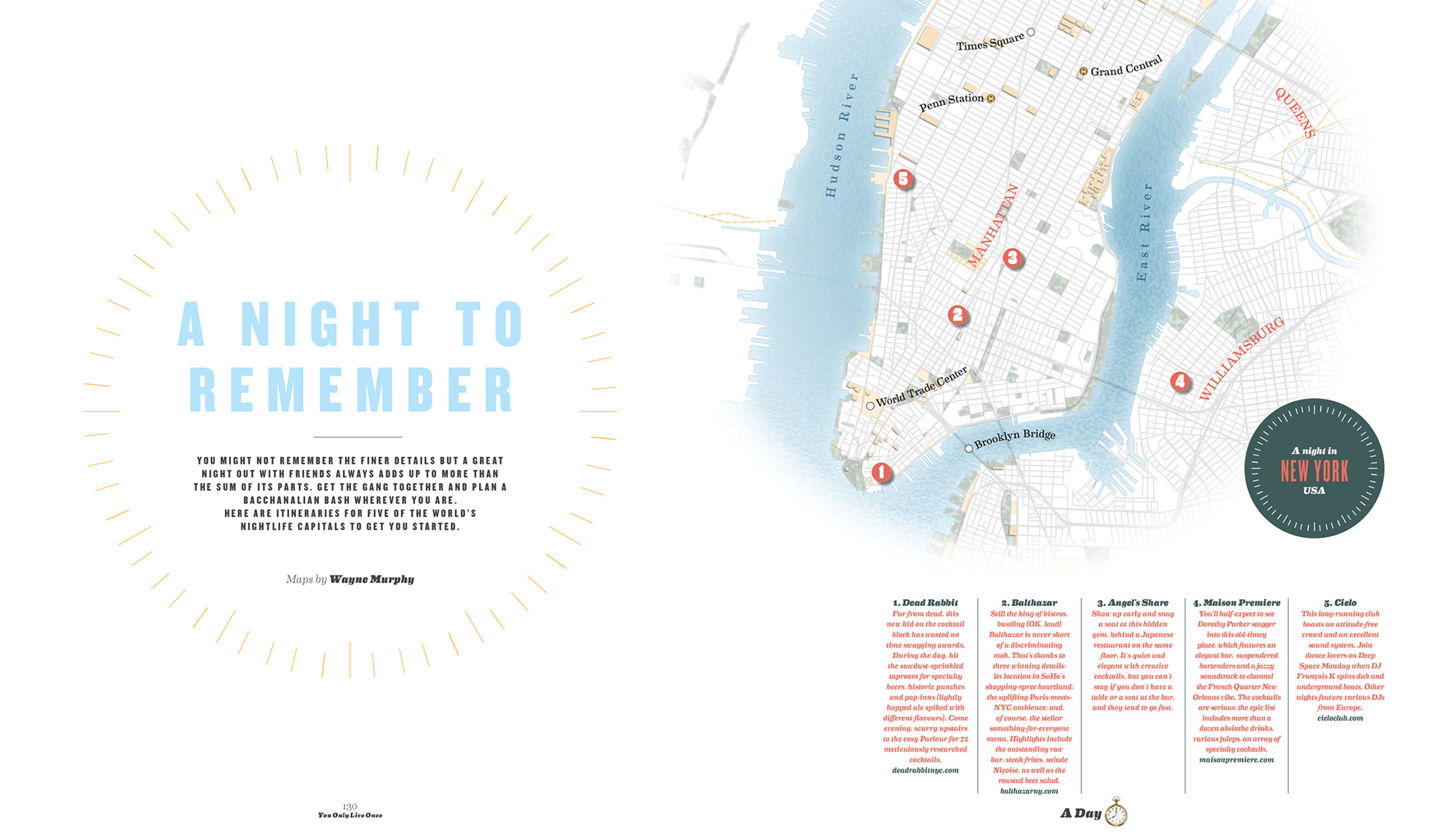 New York City map produced for the You Only Live Once trade title published by Lonely Planet